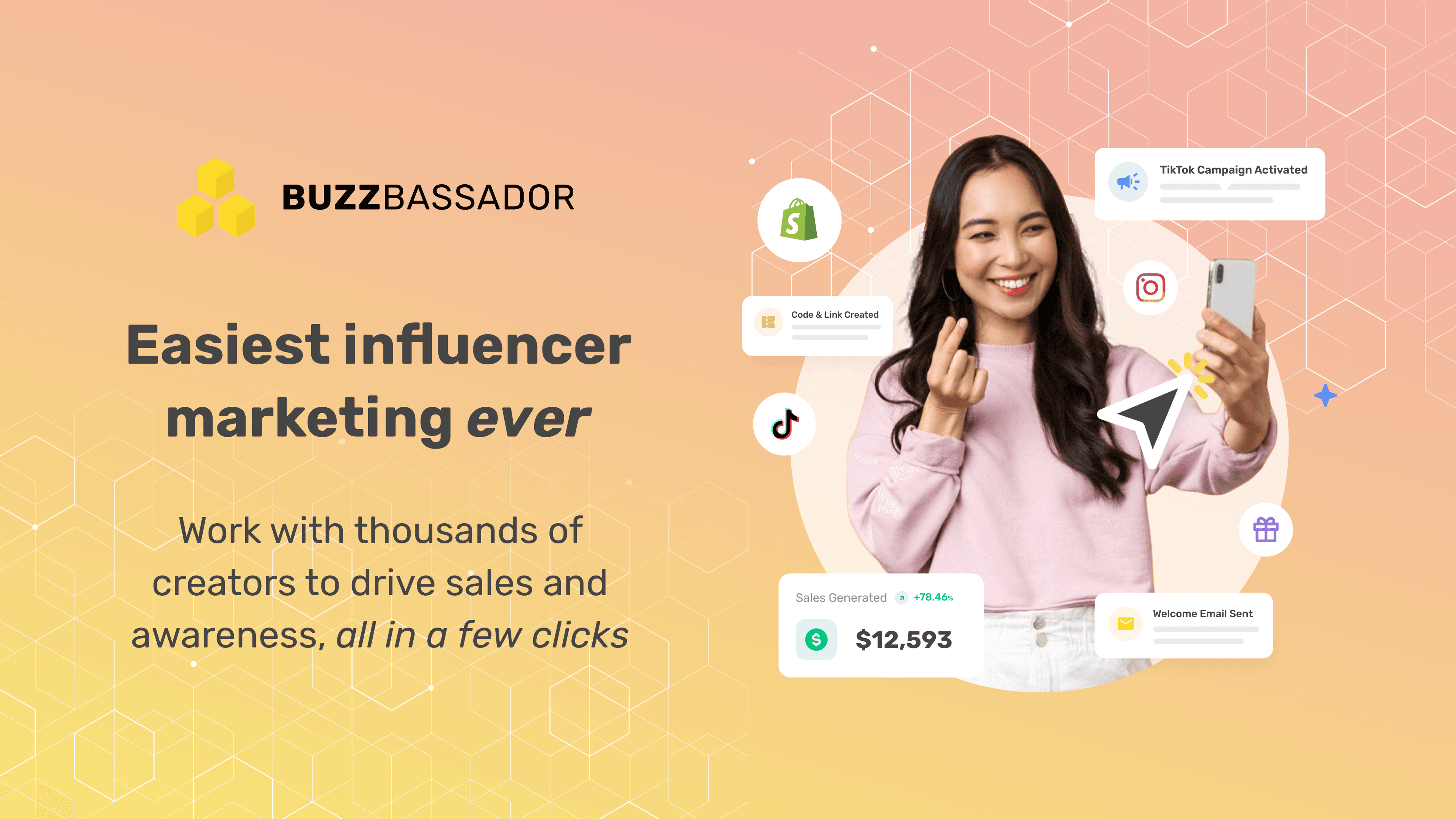 This is why it is essential to leverage influencers, content creators, and brand ambassadors to promote your brand on social media - not just in a busy season like this one, but year-round! The good news is, Buzzbassador makes this easy. The Buzzbassador app provides an all-in-one platform for reaching and managing social media creators worldwide. Buzzbassador integrates directly with Shopify to track the sales brought in by particular creators and reward them for their performance. With Buzzbassador, you can quickly establish and automate your affiliate, ambassador, or influencer program and assess the results in real time with sales reports, leaderboards, and more.